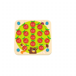 Tooky toy igra memorije - jabuka.Drveni set za igru originalnim dizajnom i varijabilnosti igre. Igra se menja u zavisnosti od toga koji od 10 šablona prikačite ispod velikog drvenog drveta. Da li će to biti automobili, životinje, brojevi ili oblici? Zatim stavite 16 drvenih jabuka u rupe na drvetu. Nakon toga, igrači uvek poklanjaju 2 jabuke i saznaju da li su iste slike skrivene ispod njih ili ne.
