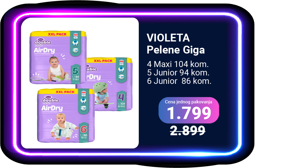 Svi artikli prikazani na sajtu su deo naše ponude, ali ne podrazumeva da su dostupni u svakom trenutku.