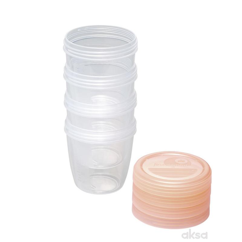 Kao deo sistema \'\'sve u jednom\'\', posuda za majčino mleko može se savršeno kombinovati sa First Moments ručnom pumpicom za izmlazavanje mleka. Zahvaljujući tabli sa nalepnicama možete zabeležiti sadržaj i datum za odlaganje i čuvanje. Postiji i mogućnost da cuclu postavite na posudu i da ona zašas postane flašica sa širokim otvorom iz koje možete nahraniti vašu bebu čini ovu posudu veoma praktičnom.