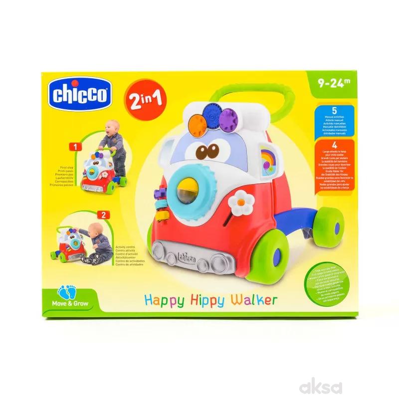 Chicco je jedan od vodećih brendova na svetskom tržištu proizvoda za bebe i decu i jedan je od deset najprodavanjih italijanskih brendova u svetu. Chicco hodalica kamionče Happy Hippy omogućiće mališanima da naprave svoje prve korake. Vrlo zanimljiva hodalica u vintage stilu, biće uz dete od samog početka njegovog učenja da hoda. 2 u 1 proizvod, jer pored funkcije pomoći pri prohodavanju deteta - poseduje na prednjoj strani mnoštvo aktivnosti za manipulaciju - roto zupčanici, lopte zvečka, cvetić koji se pomera.... Sadrži 4 točka i dršku za koju se dete drži dok hoda i pomera guralicu u željenom smeru. Težina: 1,5 kg. Dim.proizvoda: 33 x 42,5 x 37 cm.