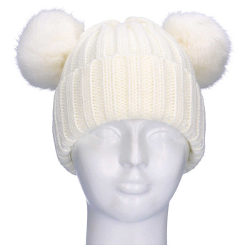 Topla zimska kapa za devojčice sa dve ukrasne ćube.