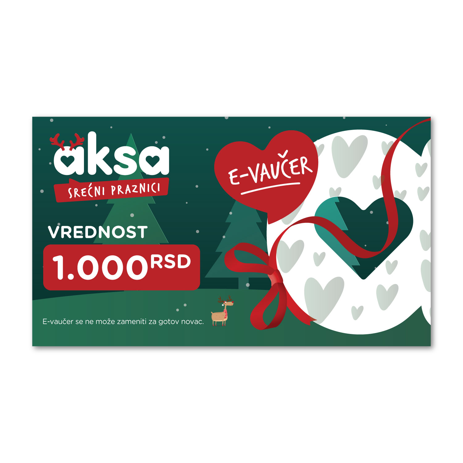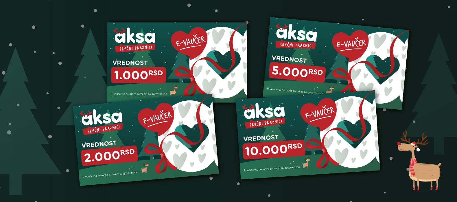 E-vaučeri u iznosima 1.000, 2.000, 5.000 i 10.000 dinara, važe 12 meseci od kupovine i mogu se koristiti višekratno, u Aksa prodavnicama i online.