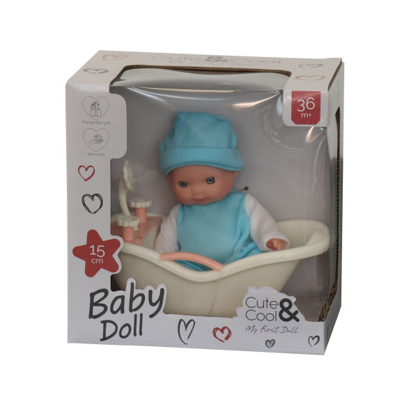- Cute&Cool lutka beba u kadi plava, 15cm