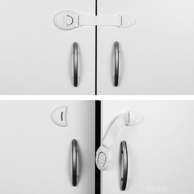 Bravica se lepi na površinu nameštaja pomoću priložene lepljive trake. Da biste otvorili ormarić ili fioku, pritisnite na odgovarajući element za otključavanje koji se nalazi na bravi. Ovo otežava detetu da otključa bravu, a odraslima je laka za korišćenje.